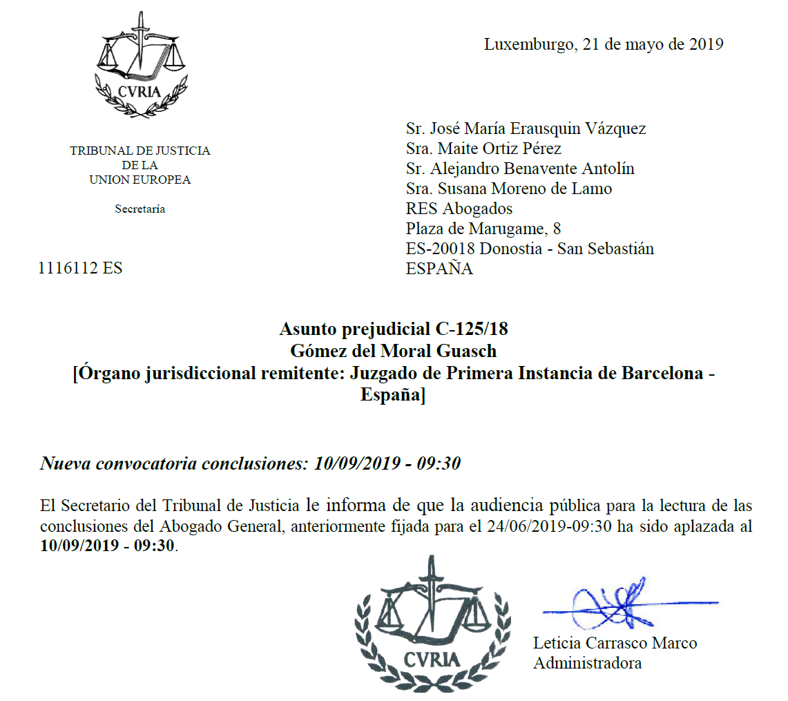 Irailaren 10ean, goizeko bederatzi eta erdietan, Europar Batasuneko Justizia Epaitegiko abokatu nagusiak argitara emango du mailegu kopuru garrantzitsu baten gainean eragina duen IRPH indize espainiarraren auzian duen iritzia. Abokatu nagusiaren iritzia ez da epaitegiarentzat loteslea, baina epai gehienek abokatu nagusiaren irizpidearekin bat egiten dute. Ahozko saioa pasa den otsailaren 25ean izan zen Luxemburgen, eta abokatu nagusiaren txostena argitaratzea da epaia ebatzi aurretik egin beharreko azken urratsa. Epaia 2019ko bukaera aldera edota 2020aren hasieran iritsiko dela uste da.