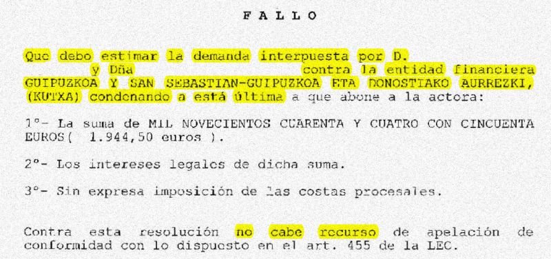 Gogoratu beharra dago epai hauek Gipuzkoako Probintzia Entzutegiak IRPHa baliogabetu zuen lehen epaia bertan behera utzi ondoren iritsi direla, eta horrexegatik gure borrokari bultzada garrantzitsua ematera datoz. Probintzia entzutegiaren epaiaren kontra, Manuel Ruiz de Lara eta Edmundo Rodríguez Achútegui bezalako epaile adituek IRPHa baliogabetzen duten epaiak ebazten jarraitzen dute, eta honek gure itxaropenak handitzen ditu Espainiako Auzitegi Gorenean emango den borrokarako.