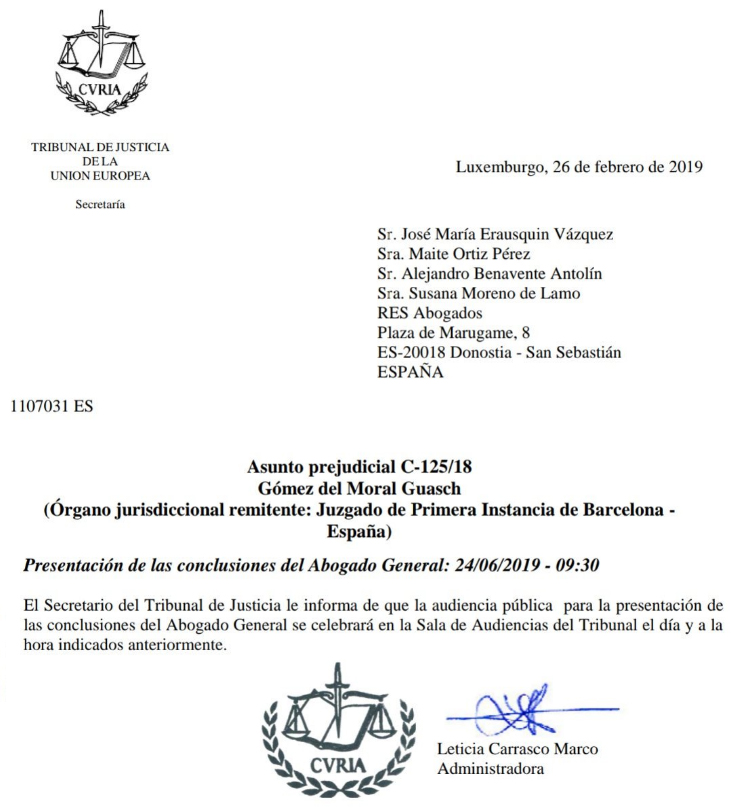 El 24 de junio sabremos qué opina el Abogado General, y poco después conoceremos la sentencia del TJUE.