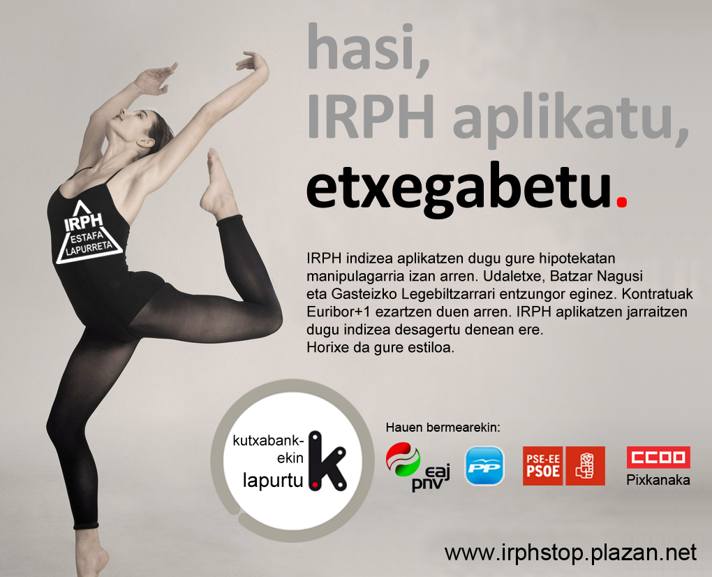 Kutxabank: hasi, IRPH aplikatu, etxegabetu Kutxabankek abian jarri berri duen zuritze kanpainaren aurrean sarean iadanik agertu dira zenbait parodia. Guk geurea egin dugu.