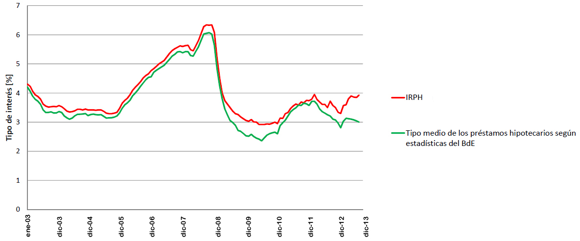 Hasteko, begira Espainiako Bankuaren datuekin eginiko grafiko honetan nola IRPHa beti hipoteken interesen bataz bestekoaren gainetik dagoen.